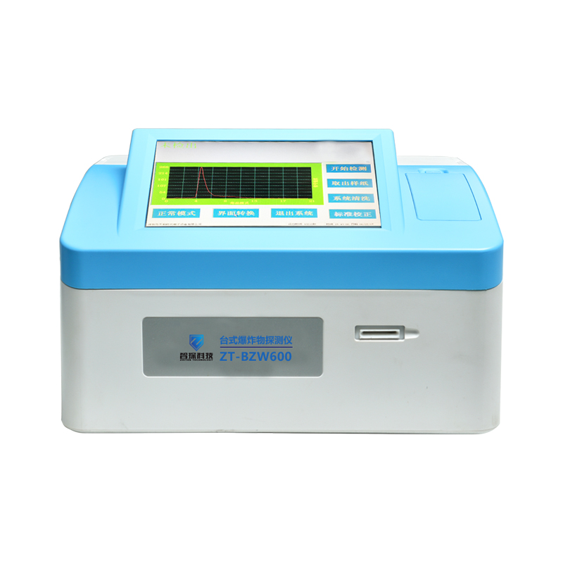 ZT-BZW600臺式痕量爆炸物毒品檢測儀采用光電離高分辨離子遷移譜( Photoionization Ion Mobility Spectrometry,PIMS)技術,不含放射源,對人體無任何輻射危害,具有檢測速度快、檢測靈敏度高、功耗低、移動方便、易于維護、使用環境和要求適應性強等特點,能同時準確檢測出黑火藥以及國際民航組織規定的全部爆炸物和毒品。